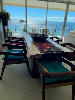 This luxurious condominium has an open floor plan - the Great Room with comfy sectional sofa, 70" tv, fully equipped kitchen, formal dining seating for 6, casual kitchen island seating for 4. Patio doors slide fully open, inviting the warm breeze. The remote controlled shades darken the room when you are ready to be away from the sunshine. Patio lounge and table for 2 on the 7th floor balcony overlooking the beach and mountainside.